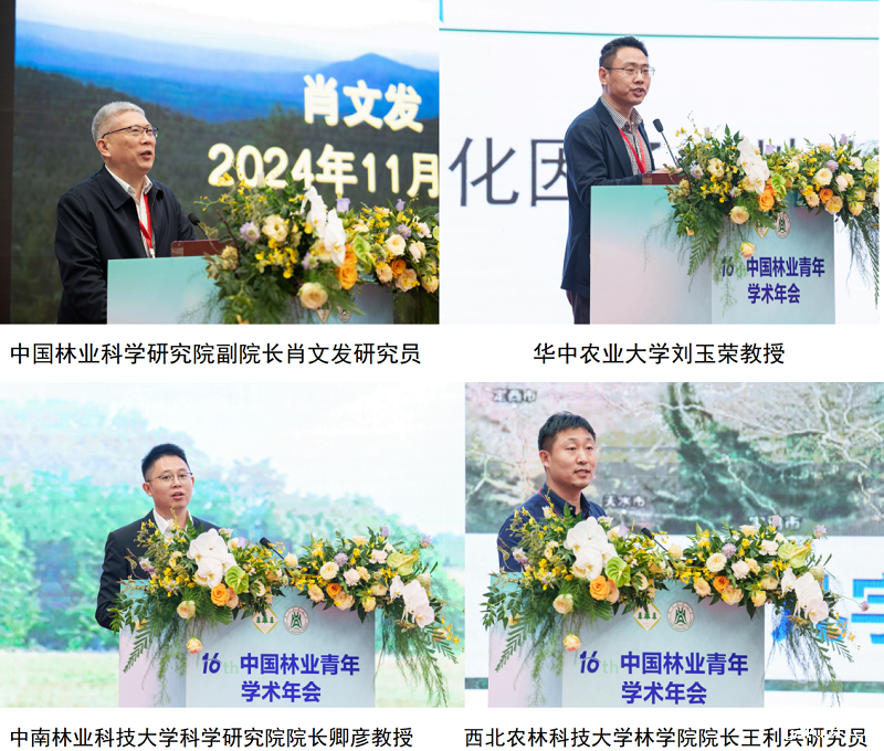 中国工程院院士、华中农业大学张献龙教授,中国林业科学研究院副院长肖文发研究员,国家杰出青年科学基金获得者、华中农业大学刘玉荣教授,国家优秀青年科学基金获得者、中南林业科技大学科学研究院院长卿彦教授,西北农林科技大学林学院院长王利兵研究员分别作了《棉花生物育种技术创新与应用》《生态系统管理:理论与实践探索》《植被恢复驱动的土壤生物多样性与功能演变》《木竹新材料分级构筑与功能化利用研究》《黄河“几字弯”木本油料开发与利用》的大会主旨报告。