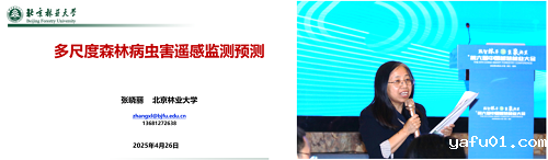 北京林业大学张晓丽教授的《多尺度森林病虫害遥感监测预测》报告指出,及时准确的监测与可靠的时空预测是林业有害生物灾害科学防控的基础。多源遥感结合智能分析方法可为灾害早期监测和蔓延趋势预测提供技术支撑。报告针对我国林业有害生物监测预测的应用需求和技术瓶颈,介绍林业有害生物灾害遥感监测和多尺度预测的机理、内容、关键技术和挑战,以及团队近年的研究成果与最新研究进展。