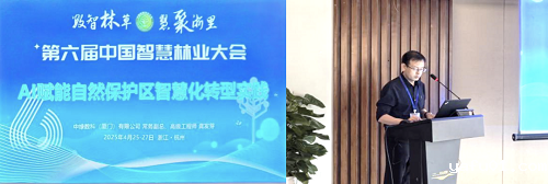 中绿数科(厦门)有限公司龚发芽常务副总的《AI赋能自然保护区智慧化转型实践》报告,介绍了自然保护区在智慧化建设方面面临的挑战,包括数据孤岛、监测手段单一等问题。在此基础上提出了自然保护区智慧化转型需以“全省一盘棋”战略思维为统领的建设思路,构建全天候、立体化的监测网络体系,整合多源数据并融合AI技术实现智能决策。他详细介绍了“天空地人”一体化监测网络、AI辅助决策的关键应用场景,如物种智能监护、环境智能监测、人类活动监测等。报告还展示了公司在智慧林草领域的转型成效和丰富的项目经验。